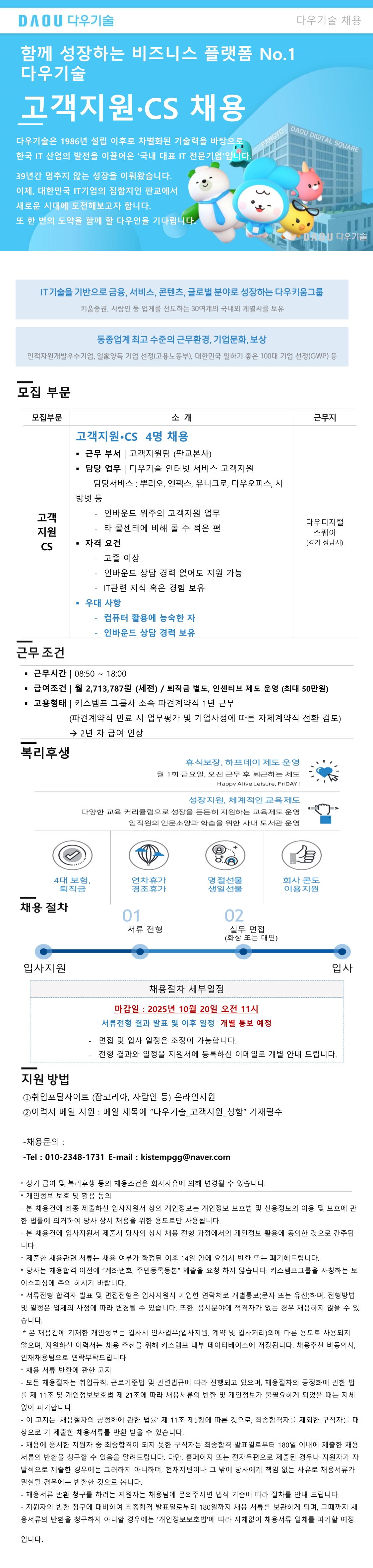 [¿ù 271¸¸/½ÅÀÔO] ´ë±â¾÷°è¿­»ç '´Ù¿ì±â¼ú' °í°´Áö¿øÆÀ ´Ù¼öä¿ë(¼º³²½Ã)