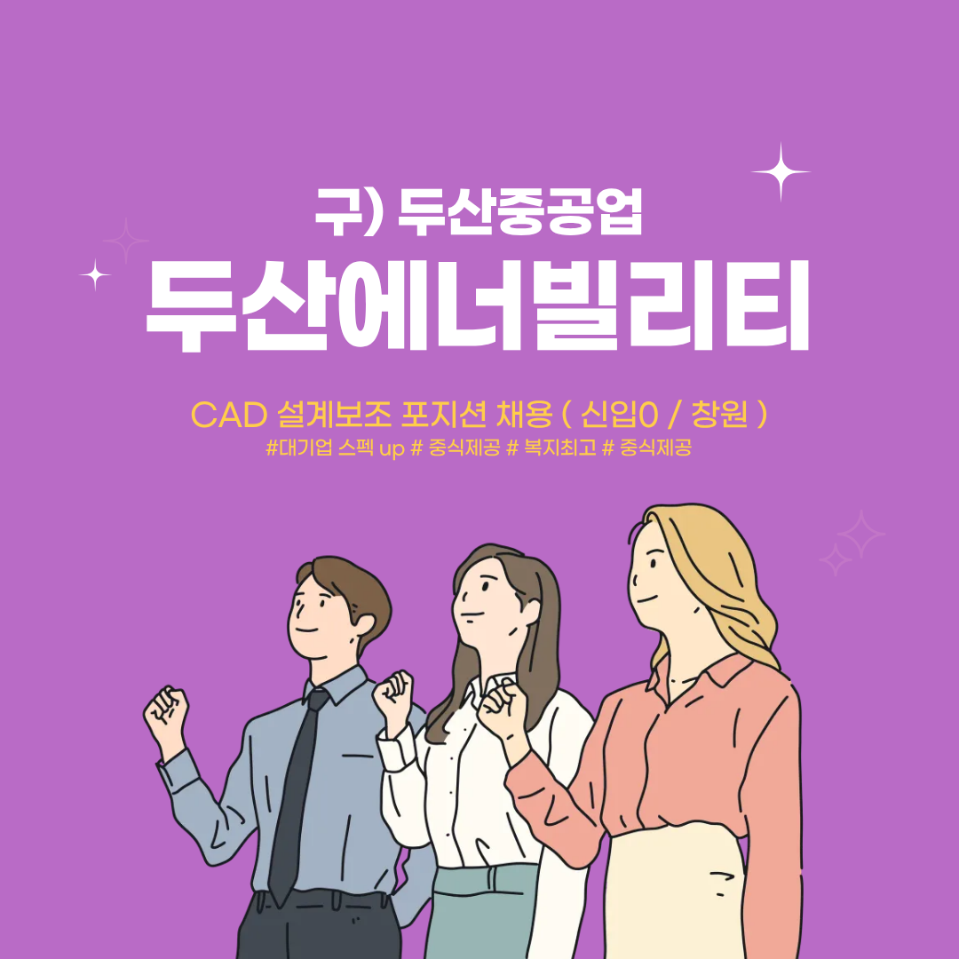 µÎ»ê¿¡³Êºô¸®Æ¼ : https://www.doosanenerbility.com/kr : ±¸, µÎ»êÁß°ø¾÷ : ´ëÇѹα¹ ´ëÇ¥ Ç÷£Æ® Àü¹® ±â¾÷ : È·Â, ¿øÀÚ·Â, ½ÅÀç»ý µîÀÇ ¿¡³ÊÁö ¹× Water ºÐ¾ß¿¡¼ ÅëÇÕ ¼Ö·ç¼ÇÀ» Á¦°ø ´ë±â¾÷ µÎ»ê¿¡³Êºô¸®Æ¼ ÀÚü°è¾àÁ÷ Àüȯ°¡´É¼º êó ¡Ú¡Ú Àüȯ»ç·Ê ´Ù¼ö êó ¦¸ðÁýºÐ¾ß [º¹ÇÕÅä°Ç±â¼úÆÀ_¼³°èº¸Á¶] - ERP µ¥ÀÌÅÍ ÀÔ·Â - µµ¼/µµ¸é ½Ã½ºÅÛ µî·Ï/Á¦Ãâ/°ü¸® - ¼³°è¹®¼ ÀÛ¼º ¹× ¼öÁ¤ ÀÛ¾÷ - »ç³» ½Ã½ºÅÛ °ü·Ã ¾÷¹« - µµ¸é ÀÛ¼º ¹× ¼öÁ¤(AutoCAD»ç¿ë) - Vendor µµ¼ °ü¸® - ±âŸ ¼³°è º¸Á¶ ¾÷¹« ¦ÀÚ°Ý»çÇ× - ÃÊ´ëÁ¹ÀÌ»ó / ½ÅÀÔ°¡´É¡Ú - Auto-CAD Ȱ¿ë °¡´ÉÀÚ ù± ¡Ú - ±âº»ÀûÀÎ ¿µ¾î ¹®¼ ÇØµ¶ °¡´ÉÀÚ [´Ü±â/ÀÎÅÏ/¾Æ¸£¹ÙÀÌÆ®/½Ç½À/±³À°À̼ö µî ±â°£ ¹«°ü/ °ü·Ã°æÇè À̷¼¿¡ ¸ðµÎ ±âÀç Çʼö] - Áï½Ã ¸éÁ¢ ¹× Ãâ±Ù °¡´ÉÀÚ ¿ì´ë * ¸éÁ¢¿¹Á¤ÀÏ: 01.23 (±Ý) * ÀԻ翹Á¤ÀÏ: 01.26 (¿ù) ** ¸éÁ¢ ¹× ÀÔ»ç ¿¹Á¤ÀÏÀº º¯µ¿ °¡´É¼º ÀÖ½À´Ï´Ù. ¦±Ù¹«Á¶°Ç - ±Þ¿©Á¶°Ç : ±âº»±Þ ¿¬ 3,200¸¸¿ø [¼¼Àü/1³â ¸¸±Ù ½Ã ÅðÁ÷±Ýº°µµ] + ¸íÀý »ó¿©±Ý/»óǰ±Ç ÃÑ ¿¬ 60¸¸¿ø Áö±Þ (¼³/Ãß¼® »ó¿©±Ý °¢ 20¸¸¿ø + »óǰ±Ç 10¸¸¿ø) + ¿©¸§ÈÞ°¡ºñ ¿¬ 80¸¸¿ø Áö±Þ + ⸳±â³äÀÏ »óǰ±Ç 10¸¸¿ø Áö±Þ + »ç³» Áᫎ Á¦°ø --------------------------------------------------------------------------------- + ¿©¸§ÈÞ°¡ ¿¬Â÷ ¿Ü 5ÀÏ º°µµ Áö±Þ(Áö±Þ ½Ã±â ÀÌÀü ÀÔ»çÀÚ ÇÑÇÏ¿© Áö±Þ) * »ç¿ë»ç¾÷ÁÖ ³»ºÎ»çÁ¤ ¹× ±âÁØ¿¡ µû¶ó Áö±Þ¿©ºÎ¿Í ±Ý¾×ÀÌ º¯°æµÉ ¼ö ÀÖÀ½ - ±Ù ¹« Áö : °æ»ó³²µµ â¿ø½Ã ¼º»ê±¸ µÎ»êº¼º¸·Î 22 * Åë±Ù¹ö½º ¿îÇà - ±Ù¹«½Ã°£ : ÁÖ 5ÀÏ (¿ù-±Ý) ÆòÀÏ 08:00 ~ 17:00 - ä¿ëÇüÅ : Ű½ºÅÛÇÁ±×·ì»ç ¼Ò¼Ó 1³â ÆÄ°ß °è¾à ±Ù¹« ÈÄ ¾÷¹« Æò°¡ ¹× ±â¾÷ »çÁ¤¿¡ µû¶ó ¿¬Àå °¡´É(ÃÖ´ë 2³â) ÀÌÈÄ ¾÷¹« Æò°¡ ¹× ±â¾÷»çÁ¤¿¡ µû¶ó ¡Ú µÎ»ê¿¡³Êºô¸®Æ¼ ÀÚü°è¾àÁ÷ Àüȯ°¡´É¼º êó(Àüȯ»ç·Ê ´Ù¼ö êó) [±â¾÷»çÁ¤°ú ¾÷¹«Æò°¡¿¡ µû¶ó ¿¬Àå ¹× Àüȯ °¡´É¼º êó] ¦º¹¸®ÈÄ»ý * »ç¿ë»ç¾÷ÁÖ ³»ºÎ»çÁ¤ ¹× ±âÁØ¿¡ µû¶ó Áö±Þ¿©ºÎ¿Í ±Ý¾×ÀÌ º¯°æµÉ ¼ö ÀÖÀ½ * Ű½ºÅÛÇÁ±×·ì»ç º¹¸®ÈÄ»ý - ÁÖ 5ÀÏ, 4´ëº¸Çè, ¿¬Â÷, 1³âÀÌ»ó ±Ù¹« ½Ã ÅðÁ÷±Ýº°µµ - »ýÀϼ±¹°, °æÁ¶»çºñ Áö¿ø * ±â¾÷Ãø º¹¸®ÈÄ»ý - ¸íÀý»ó¿©±Ý ¼³/Ãß¼® °¢°¢ 20¸¸¿ø + »óǰ±Ç 10¸¸¿ø (ÃÑ ¿¬ 60¸¸¿ø) - ¿©¸§ÈÞ°¡ ¿¬Â÷ ¿Ü 5ÀÏ º°µµ Áö±Þ - ¿©¸§ÈÞ°¡ºñ 80¸¸¿ø Áö±Þ - »ç³» Áᫎ Á¦°ø - Åë±Ù¹ö½º ¿îÇà - ⸳±â³äÀÏ»óǰ±Ç 10¸¸¿ø Áö±Þ * ÃßÈÄ ÇØ´ç ä¿ë°Ç ÃÖÁ¾Çհݽà °æ·Â °ü·Ã Áõºù¼·ù Á¦Ãâ ¿äûÀÌ ÀÖÀ» ¼ö ÀÖ½À´Ï´Ù. ¦Áö¿ø¹æ¹ý