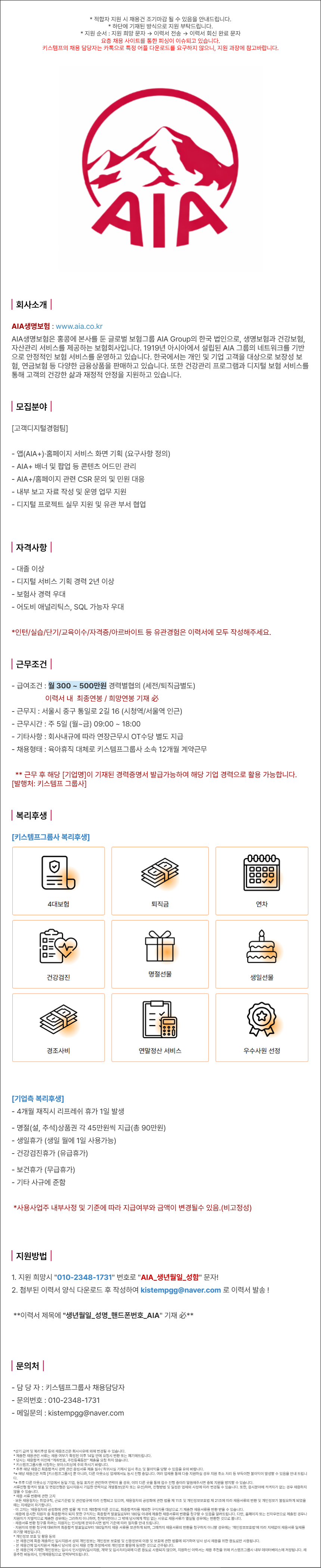[½Ãû¿ª/¿ù ÃÖ´ë500¸¸] ¿Ü±¹°è AIA»ý¸íº¸Çè ¼­ºñ½º±âȹÀÚ(SQL) ä¿ë