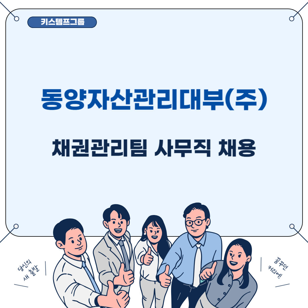 * ÀûÇÕÀÚ Áö¿ø½Ã ä¿ë°Ç Á¶±â¸¶°¨ µÉ ¼ö ÀÖÀ½À» ¾È³»µå¸³´Ï´Ù * * ÇÏ´Ü¿¡ ±âÀçµÈ ¹æ½ÄÀ¸·Î Áö¿ø ºÎʵ右´Ï´Ù* * Áö¿ø ¼ø¼ : Áö¿ø Èñ¸Á ¹®ÀÚ ¡æ À̷¼ Àü¼Û ¡æ À̷¼ ȸ½Å ¿Ï·á ¹®ÀÚ * ÇÏ´Ü °ø°í È®ÀÎ ÈÄ Áö¿ø Èñ¸Á ½Ã 010-2348-1671 ·Î '»ý³â¿ùÀÏ/¼ºÇÔ/µ¿¾çÀÚ»ê°ü¸®´ëºÎ' º¸³»Áֽøé Áö¿ø µµ¿Íµå¸®°Ú½À´Ï´Ù. - Ű½ºÅÛÇÁ ÀÎÀçä¿ëÆÀ ±è ¹Î ÁÖ ÁÖÀÓ- ¡Ø ¿äÁò ä¿ë »çÀÌÆ®¸¦ ÅëÇÑ ÇǽÌÀÌ À̽´µÇ°í ÀÖ½À´Ï´Ù. Ű½ºÅÛÇÁÀÇ Ã¤¿ë ´ã´çÀÚ´Â Ä«ÅåÀ¸·Î ƯÁ¤ ¾îÇà ´Ù¿î·Îµå¸¦ ¿ä±¸ÇÏÁö ¾ÊÀ¸´Ï, Áö¿ø °úÁ¤¿¡ Âü°í¹Ù¶ø´Ï´Ù. ![]() ¦È¸»ç¼Ò°³ µ¿¾çÀÚ»ê°ü¸®´ëºÎ ÁÖ½Äȸ»ç dy300.co.kr µ¿¾çÀÚ»ê°ü¸®´ëºÎ(ÁÖ)´Â NPLÀü¹®ÀÚ»ê°ü¸®È¸»çÀ̸ç 2015³â 11¿ù â»çÀÌ·¡ °í·ÁÀúÃàÀºÇà NPL¸ÅÀÔ(ÆíÀÔ OPB 184¾ï¿ø)À» ½ÃÀÛÀ¸·Î ÆíÀÔ OPB 9õ¾ï¿øÀ» µ¹ÆÄ ÇÏ¿´½À´Ï´Ù. ´ç»ç´Â ÇØ´çºÐ¾ßÀÇ Àü¹®°¡µéÀÌ NPLÅõÀÚ ¹× ÀÚ»ê°ü¸® ¾÷¹« µîÀ» ´ã´çÇϰí ÀÖÀ¸¸ç, ä±Ç±ÝÀ¶±â°ü, Áõ±Ç»ç, Àü¹®NPLÅõÀÚȸ»ç, ÀÚ»ê¿î¿ë»çµé°ú ´Ù¾çÇÑ ÆÄÆ®³Ê½±À» Çü¼ºÇϰí ÀÖ½À´Ï´Ù. ¡Ú Á¤±ÔÁ÷ Àüȯ °¡´ÉÇÑ Ã¤¿ë°Ç ¡Ú Àüȯ·ü ³ôÀ½ ¡Ú ¡Ú ´Ù¼ö ä¿ëÀ¸·Î ÇÕ°Ý·ü ³ôÀº ä¿ë°ÇÀÔ´Ï´Ù. ¡Ú ¦¸ðÁýºÐ¾ß [ä±Ç°ü¸®ÆÀ] - ä±Ç Ã᫐ (»óȯ ±Ý¾× ¹× ÀÏÁ¤ ¾È³») - ¹ý Á¶Ä¡ ¾È³» - °ü·Ã µ¥ÀÌÅÍ Àü»ê ÀÔ·Â - ¹ýÀû ÀýÂ÷ ´ë»óÀÚ ¼±º° - ¿ìÆí Àü´Þ(¿ù 1ȸ ¿Ü±Ù/¹ýÀÎÂ÷·®or±âŸºñ¿ë Áö¿ø) *½ÅÀÔµµ ¹è¿ì¸ç ÇÔ²² ¼ºÀåÇÒ ¼ö ÀÖ´Â ¾÷¹«ÀÔ´Ï´Ù. ¦ÀÚ°Ý»çÇ× ¡Ú Çз ¹«°ü / ½ÅÀÔ °¡´É!! ¡Ú - ¿îÀü¸éÇãÁõ ¼ÒÁöÀÚ (½Ç¿îÀü °¡´ÉÀÚ ¿ì´ë) - »ç¹«º¸Á¶, ±ÝÀ¶»ç¹«, ä±ÇÃß½É, Àü»êÀÔ·Â, ¼·ù°ü¸®, ÀüÈÀÀ´ë µî À¯°ü¾÷¹« °æÇèÀÚ È¤Àº °ü·Ã °æ·Â ½×°íÀÚ ÇÏ´Â ºÐ (±³À°À̼ö/ÀÎÅÏ/´Ü±â/½Ç½À/´ë¿ÜȰµ¿/°ø¸ðÀü/¾Æ¸£¹ÙÀÌÆ® µî À̷¼¿¡ ¸ðµÎ ±âÀç) - ÀüÈ ¾÷¹«¿¡ °ÅºÎ°¨ ¾ø´Â ºÐ ¡Ú - Áï½Ã ¸éÁ¢ ¹× Ãâ±Ù °¡´ÉÀÚ ¿ì´ë ¡Ø ÃßÈÄ ÇØ´ç ±â¾÷¸íÀÌ ±âÀçµÈ °æ·ÂÁõ¸í¼ ¹ß±Þ °¡´ÉÇÕ´Ï´Ù. [¹ßÇàó : Ű½ºÅÛÇÁ±×·ì»ç] [½Ç±Ù¹«Áö : ÇØ´ç ±â¾÷¸í] ¡Ø ÇØ´ç ä¿ë°Ç ÃÖÁ¾Çհݽà °æ·Â °ü·Ã Áõºù¼·ù Á¦Ãâ Çʼö ¦±Ù¹«Á¶°Ç - ±Þ¿©Á¶°Ç : ¿¬ 2,900~3,400¸¸¿ø °æ·Âº°ÇùÀÇ (¼¼Àü/1³â±Ù¹«½Ã ÅðÁ÷±Ý º°µµ) + À¯°ü°æ·ÂÀÚÀÇ °æ¿ì ±âº» ±Þ¿© ¿Ü ¸àÅ丵 ¼ö´ç µî Ãß°¡ ¼ö´ç ¹ß»ý êó ¡Ú + 3°³¿ù ¸¸±Ù½Ã Á¤ÂøÁö¿ø±Ý 30¸¸¿ø Áö±Þ + Æ÷»ó±Ý Áö±Þ ¡Ú (»óÇѼ± X, °³ÀÎ ´É·Â¿¡ µû¶ó »óÀÌ) + ¿ì¼ö»ç¿ø Æ÷»ó±Ý º°µµ Áö±Þ ! - ±Ù¹«Áö : ¼¿ïƯº°½Ã ¸¶Æ÷±¸ ¸¶Æ÷´ë·Î 20 (¸¶Æ÷¿ª µµº¸ 3ºÐ) - ±Ù¹«½Ã°£ : ÁÖ5ÀÏ(¿ù~±Ý) 09:00~18:00 *½ÃÂ÷ÃâÅð±ÙÁ¦ ½Ç½Ã * ¿ù1ȸ 4½Ã°£ ÁÖ¸»±Ù¹« ¹ß»ý °¡´É¼º êó (ºñ°íÁ¤Àû, 1.5¹è ¼ö´ç Áö±Þ) - ±âŸ»çÇ× : ȸ»ç³»±Ô¿¡ µû¶ó ±Þ¿© ³» Ãʰú±Ù¹«¼ö´çÀÌ ÀϺΠÆ÷ÇÔ [¾ß±Ù °ÅÀÇ ¾øÀ½] - ä¿ëÇüÅ : Ű½ºÅÛÇÁ±×·ì»ç ¼Ò¼Ó 1³â °è¾à±Ù¹« ÀÌÈÄ ÃÖ´ë 2³â±îÁö ¿¬Àå ȤÀº ¾÷¹«Æò°¡ ¹× ±â¾÷»çÁ¤¿¡ µû¶ó Á¤±ÔÁ÷ Àüȯ ¿©ºÎ °ËÅä ¡Ú¡Ú (ÀüȯÀ² ³ôÀ½) * ´Ü, ¾÷¹«Æò°¡ ¹× ±â¾÷»çÁ¤¿¡ µû¶ó ¿¬Àå ¹× Àüȯ ¿©ºÎ °ËÅä ¦º¹¸®ÈÄ»ý * Ű½ºÅÛÇÁ ±×·ì»ç º¹¸®ÈÄ»ý - 4´ëº¸Çè, ¿¬Â÷, 1³â ÀÌ»ó ±Ù¹« ½Ã ÅðÁ÷±Ý º°µµ Áö±Þ - 30¸¸¿ø »ó´ç °Ç°°ËÁø - ¸íÀý¼±¹°, »ýÀÏÄÉÀÌÅ©, °æÁ¶»çºñ - ¿ì¼ö»ç¿ø ¼±Á¤(»óǰ±Ç 5¸¸¿ø) - ÀÇ·á Áö¿ø, ¿¬¸»Á¤»ê ¼ºñ½º µî * ±â¾÷Ãø º¹¸®ÈÄ»ý - 3°³¿ù ¸¸±Ù½Ã Á¤ÂøÁö¿ø±Ý 30¸¸¿ø Áö±Þ - ½ÃÂ÷ÃâÅð±ÙÁ¦ - ¼³, Ãß¼® ¸íÀý »óǰ±Ç Áö±Þ (±Ù¹« 3°³¿ù ÀÌ»ó ½Ã Áö±Þ, 3°³¿ù ¹Ì¸¸Àº ¼±¹° ¼¼Æ® Áö±Þ) - Æ÷»ó±Ý Áö±Þ(°³ÀÎ ´É·Â¿¡ µû¶ó »óÀÌ) - ¿ì¼ö»ç¿ø Æ÷»ó±Þ º°µµ Áö±Þ - ÀÚÀ² º¹Àå - ¸àÅä¸àƼÁ¦ * º¹¸®ÈÄ»ýÀº ȸ»ç»çÁ¤¿¡ µû¶ó Áö±Þ¿©ºÎ ¹× ±Ý¾×ÀÌ º¯µ¿ µÉ ¼ö ÀÖ½À´Ï´Ù. ¦Áö¿ø¹æ¹ý *** 1´Ü°è : Áö¿ø Èñ¸Á ½Ã 010-2348-1671' ·Î '»ý³â¿ùÀÏ_¼ºÇÔ_µ¿¾çÀÚ»ê°ü¸®' ¹®ÀÚ Àü¼Û